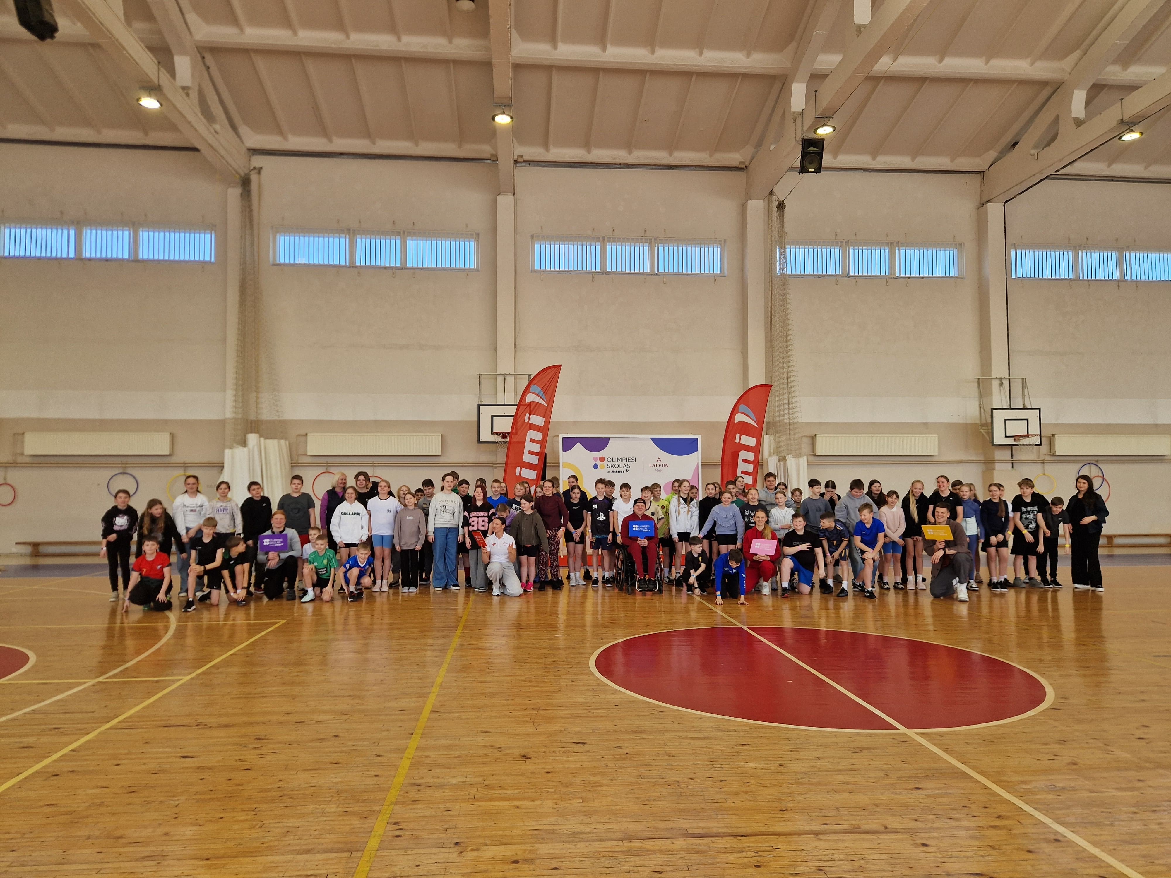 Iniciatīvu “Olimpieši skolās ar Rimi” īsteno Latvijas Olimpiskā komiteja sadarbībā ar Rimi Latvia, veicinot bērnu un jauniešu izpratni par aktīva un veselīga dzīvesveida nozīmi. Pirmajā iniciatīvas sezonā programmā iesaistījās vairāk nekā 900 skolēnu no 13 Latvijas skolām, tostarp arī specializētā skola bērniem ar intelektuālās attīstības traucējumiem. Programma izstrādāta kā papildinājums skolu mācību saturam un balstīta uz olimpiskajām vērtībām. Tās ietvaros 5.-8. klašu skolēni tiekas ar sportistiem, uztura speciālistiem un veselīga dzīvesveida ekspertiem, piedaloties praktiskās un izzinošās nodarbībās par kustību, miegu, uzturu un sabalansētu dienas ritmu. Programmas saturs izstrādāts sadarbībā ar Veselības ministriju, Slimību profilakses un kontroles centru un Rīgas Stradiņa universitātes speciālistiem, nodrošinot zinātnē balstītu un aktuālu informāciju.