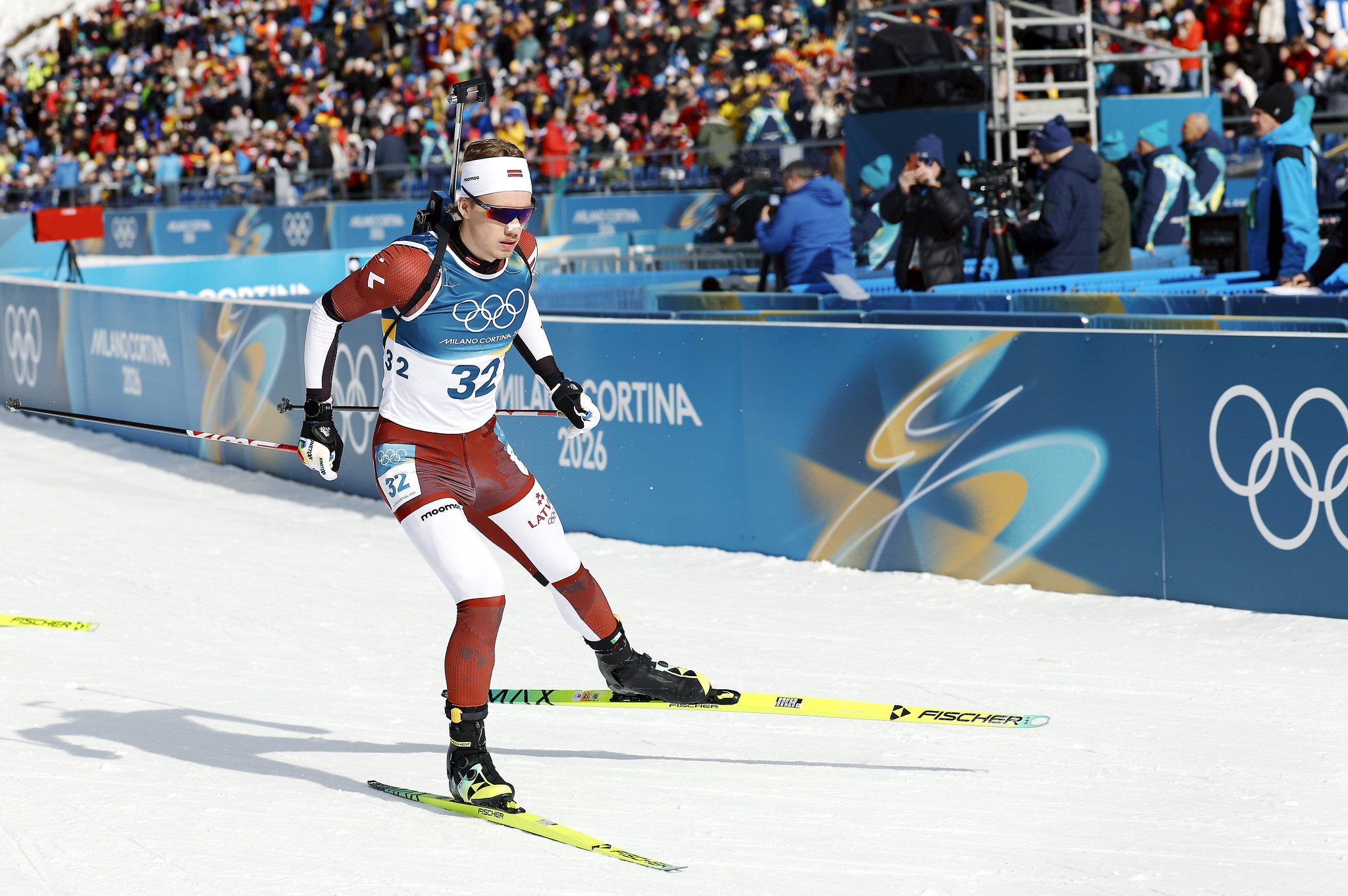 Latvijas biatlonisti ar pieciem soda apļiem un 13 rezerves patronām finišā atpalika no uzvarētājiem sešas minūtes un 43,9 sekundes.